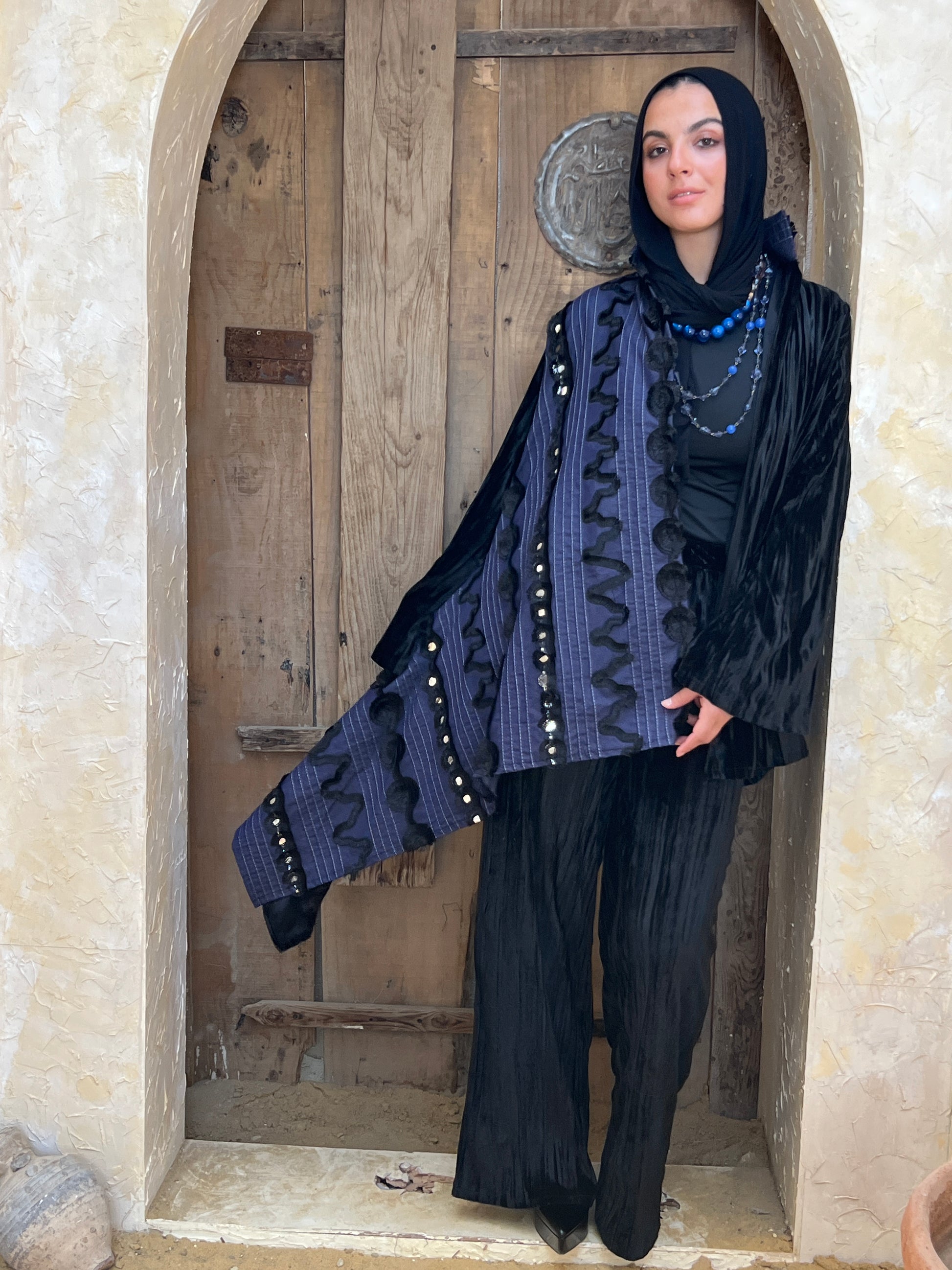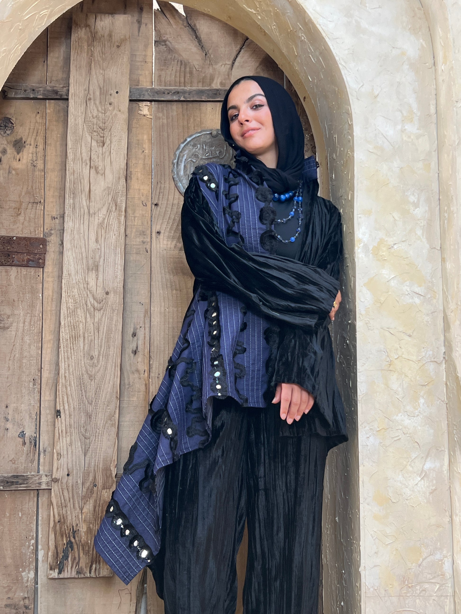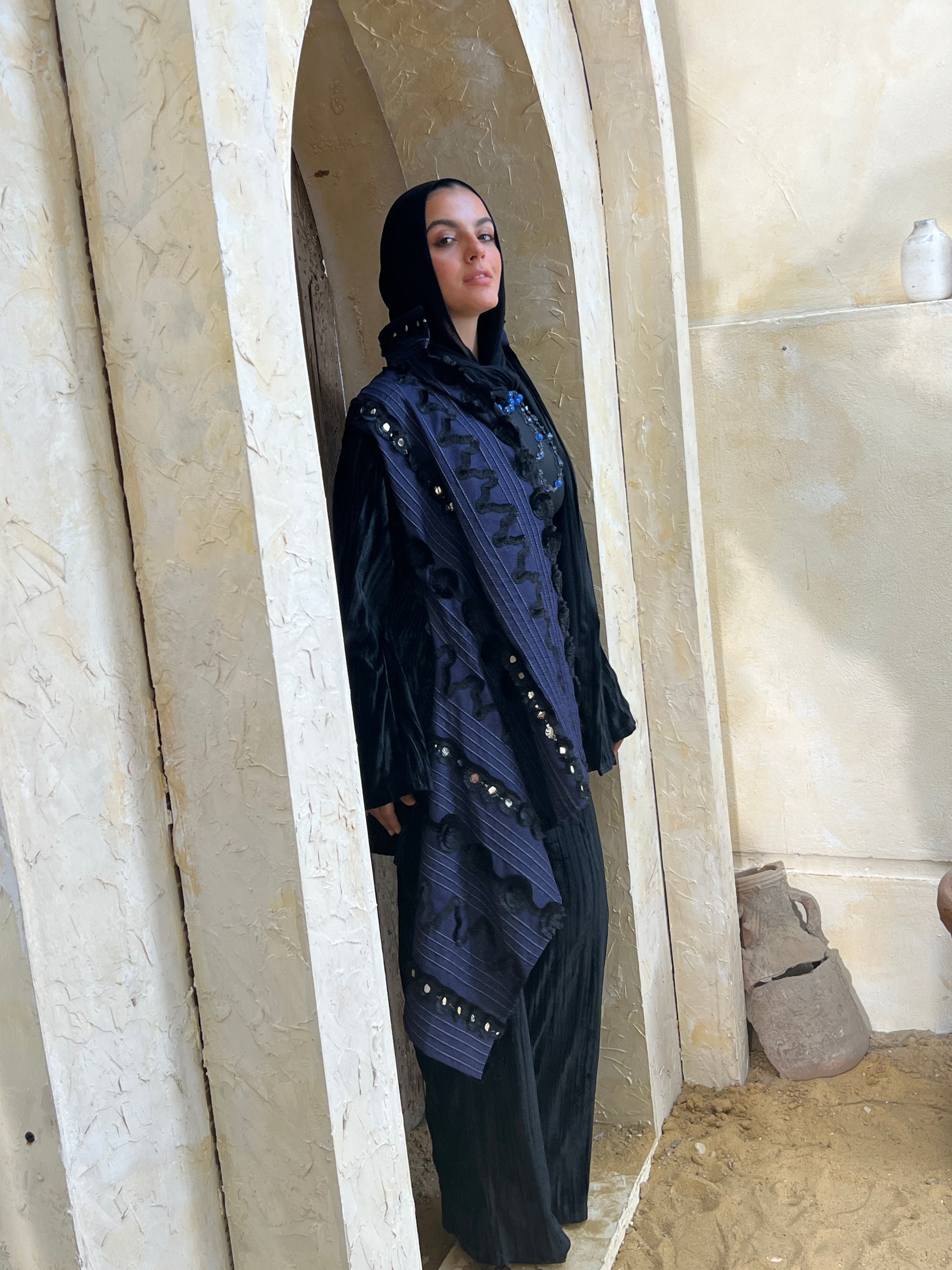 طقم من القطيفه مع أجزاء مطرزة